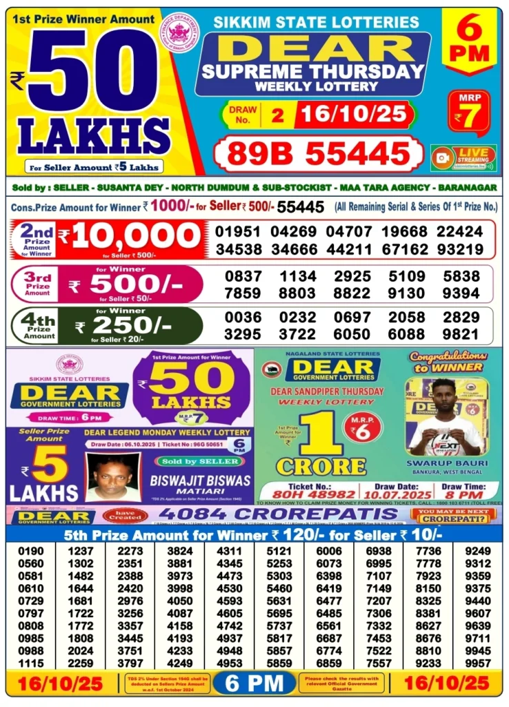 The Lottery Sambad Result Today for 16.10.2025 brought smiles and celebrations across India as new winners were announced. If your number is among the winning list above, be sure to verify it from the official gazette and claim your reward within the stipulated time.