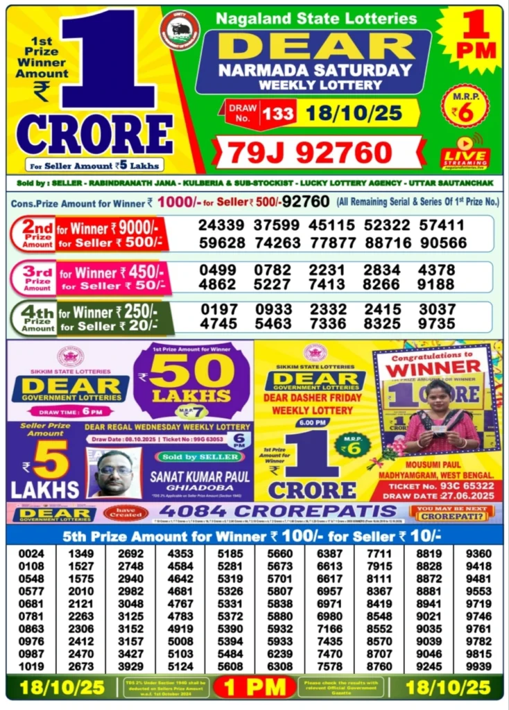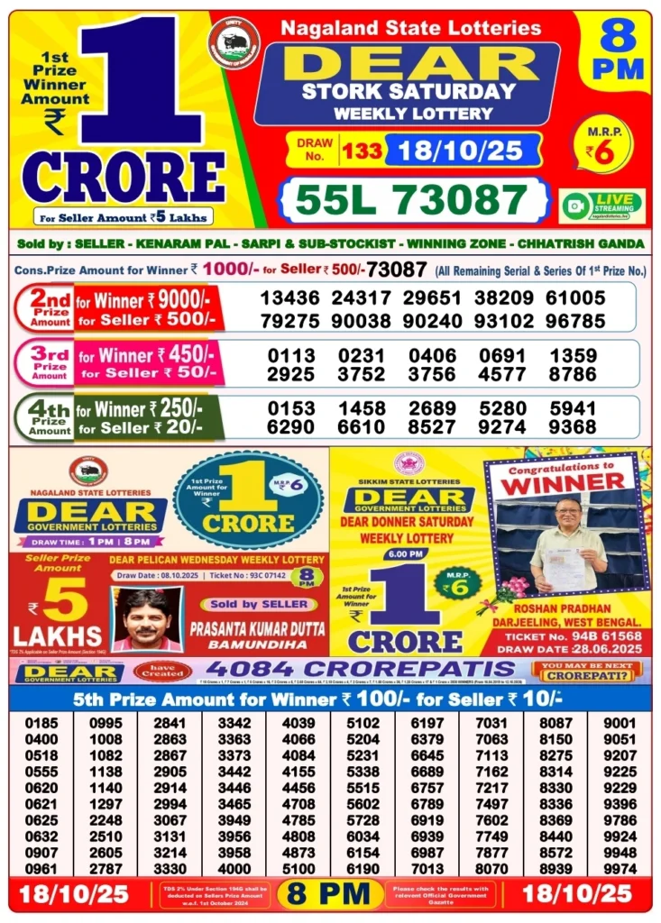 The Nagaland State Lottery Result Today 18.10.2025 brought smiles to many across the country. If your number appears in the lists above, confirm it from the official result gazette and claim your reward without delay.