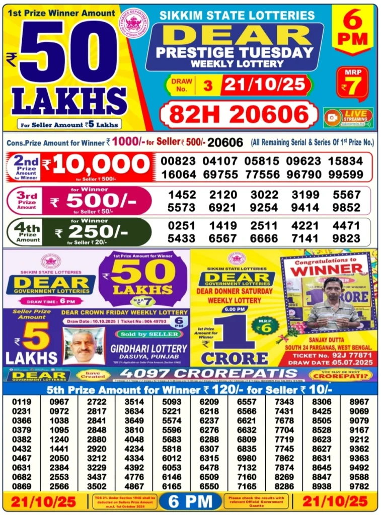 As of October 21, 2025, three new winners — from Finch, Legend, and Dwarka Monday draws — join the growing list of lucky individuals whose lives have been transformed by this weekly draw system.