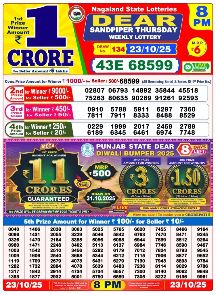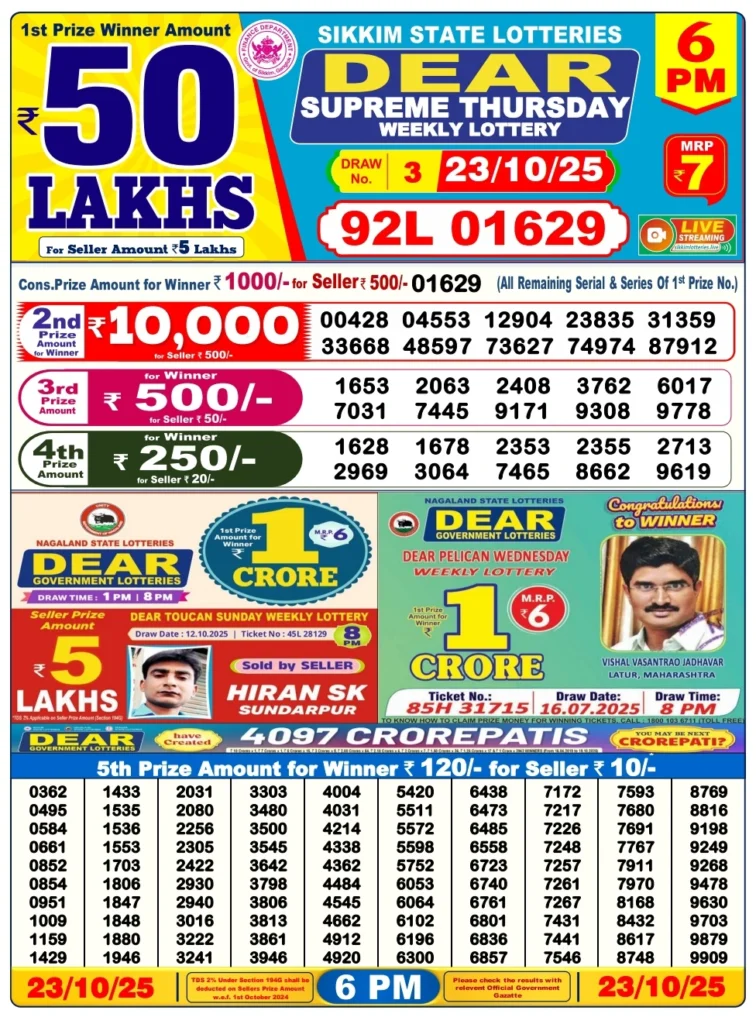 The Nagaland State Lottery Today Result remains India’s most popular and transparent state-run lottery. Every day brings three chances for participants to try their luck—and for some, today’s 23 October 2025 results have turned ordinary tickets into life-changing wins.Nagaland State Lottery Today Result