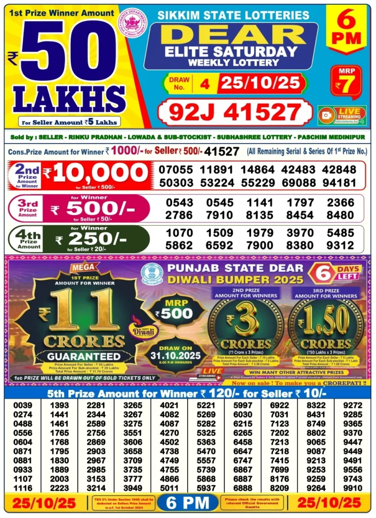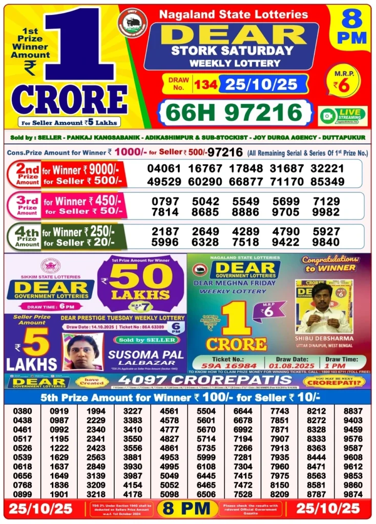 The Nagaland State Lottery Result for 25.10.2025 has brought smiles and celebrations to many winners across India. If your number appears in the list above, make sure to double-check it with the official gazette before claiming your prize.