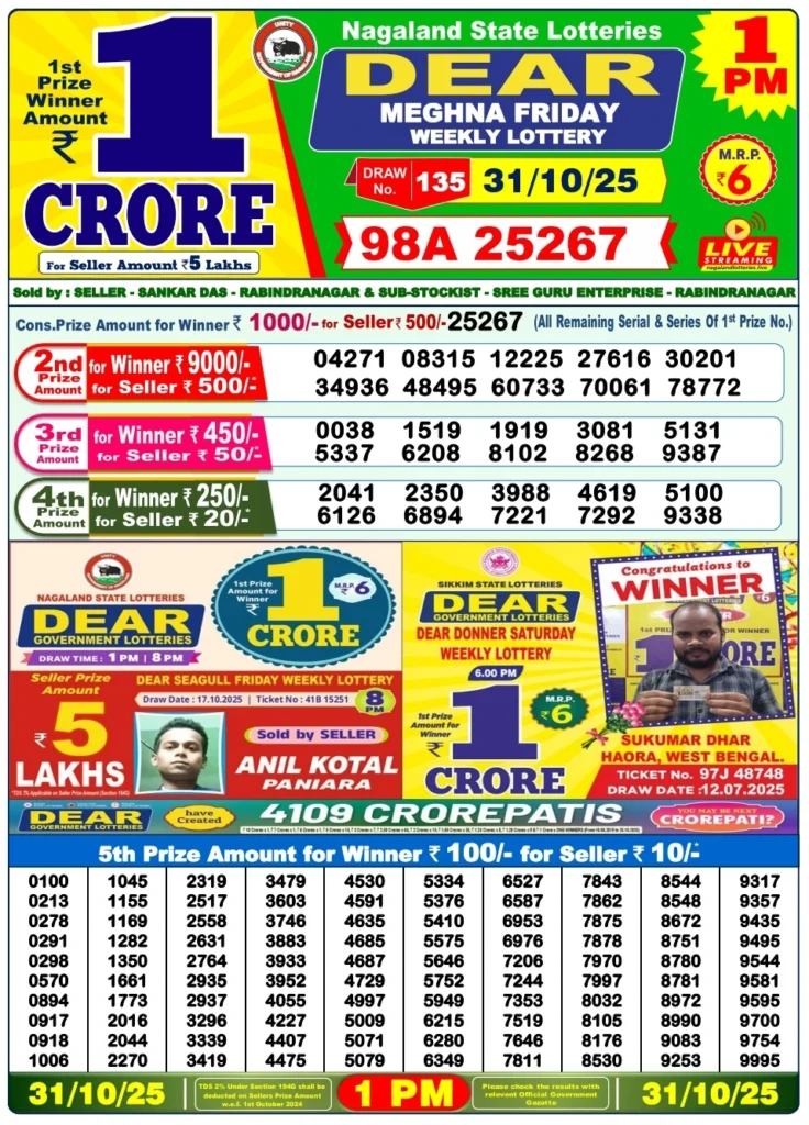 of lottery enthusiasts across India. With three draws held daily — at 1 PM, 6 PM, and 8 PM — players eagerly wait to see if luck has favored them.