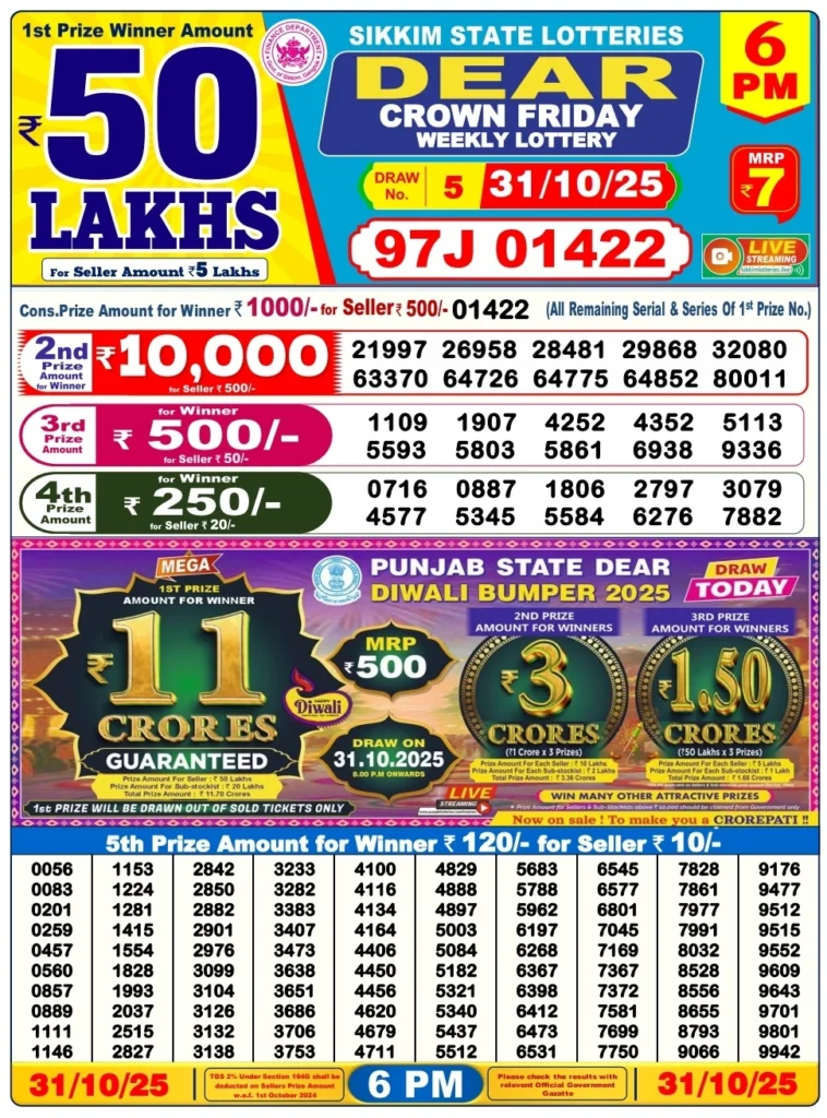 The official results for Lottery Sambad Result Today (31 October 2025) have been released, bringing joy and excitement to thousands