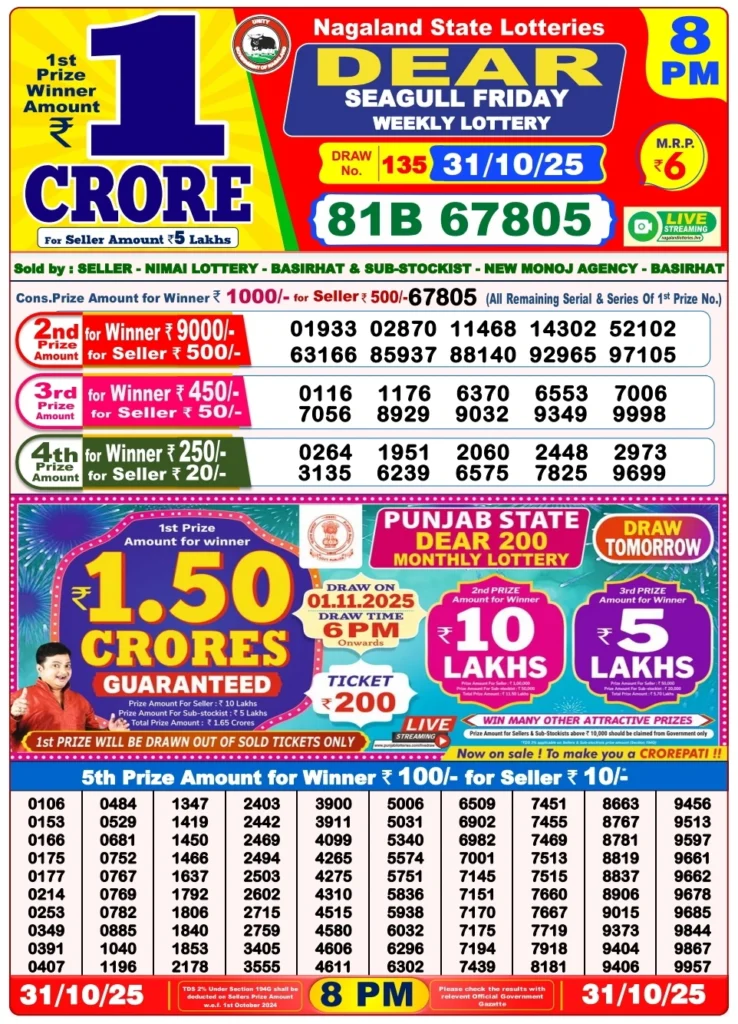 Lottery Sambad Result Today (31.10.2025): Check Complete Winning Numbers