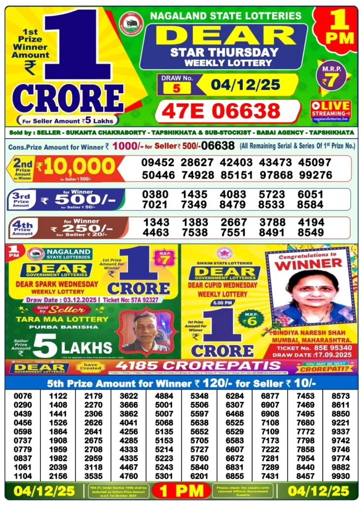 Lottery Sambad Today Result 04.12.2025 The results for have been officially released for all three major draws — Morning, Day, and Evening.