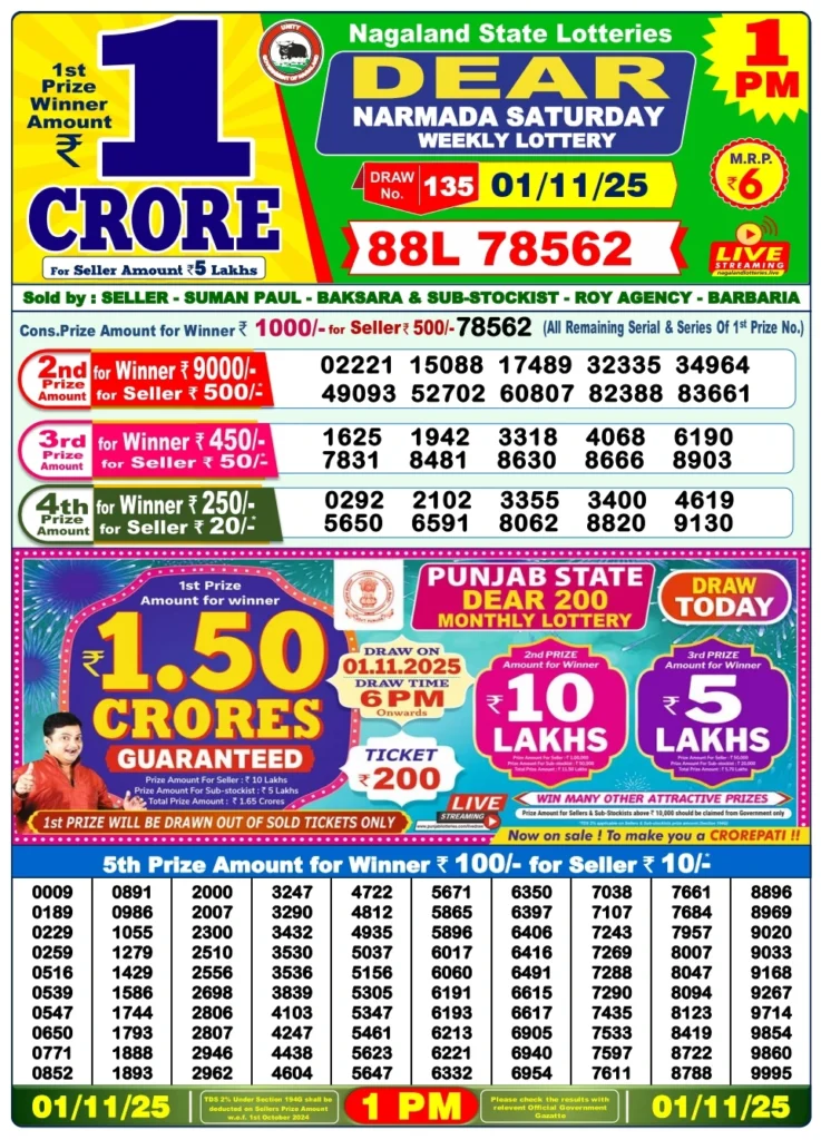 The official Nagaland State Lottery Result Today (01 November 2025) has been announced. With thousands of participants